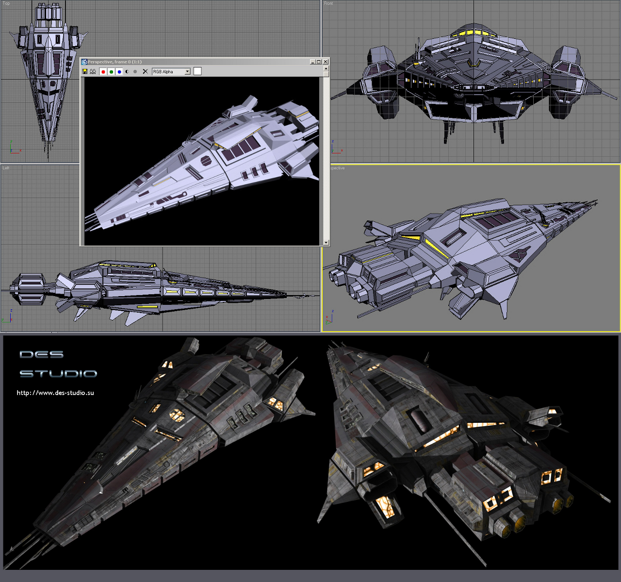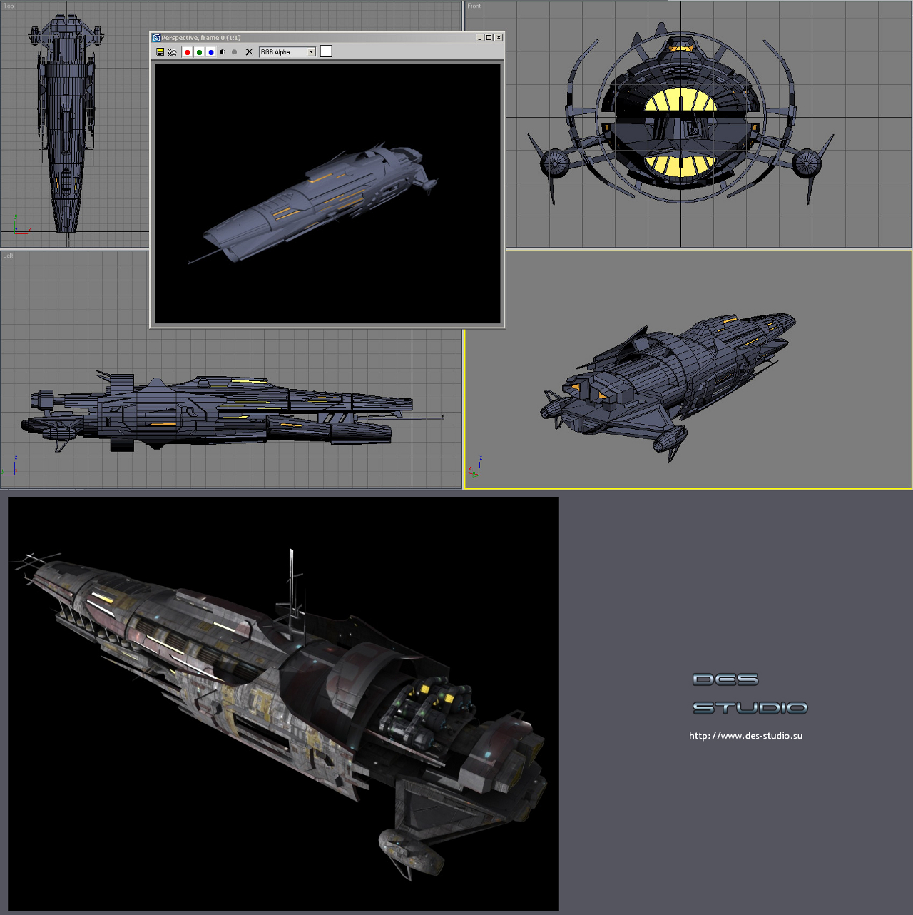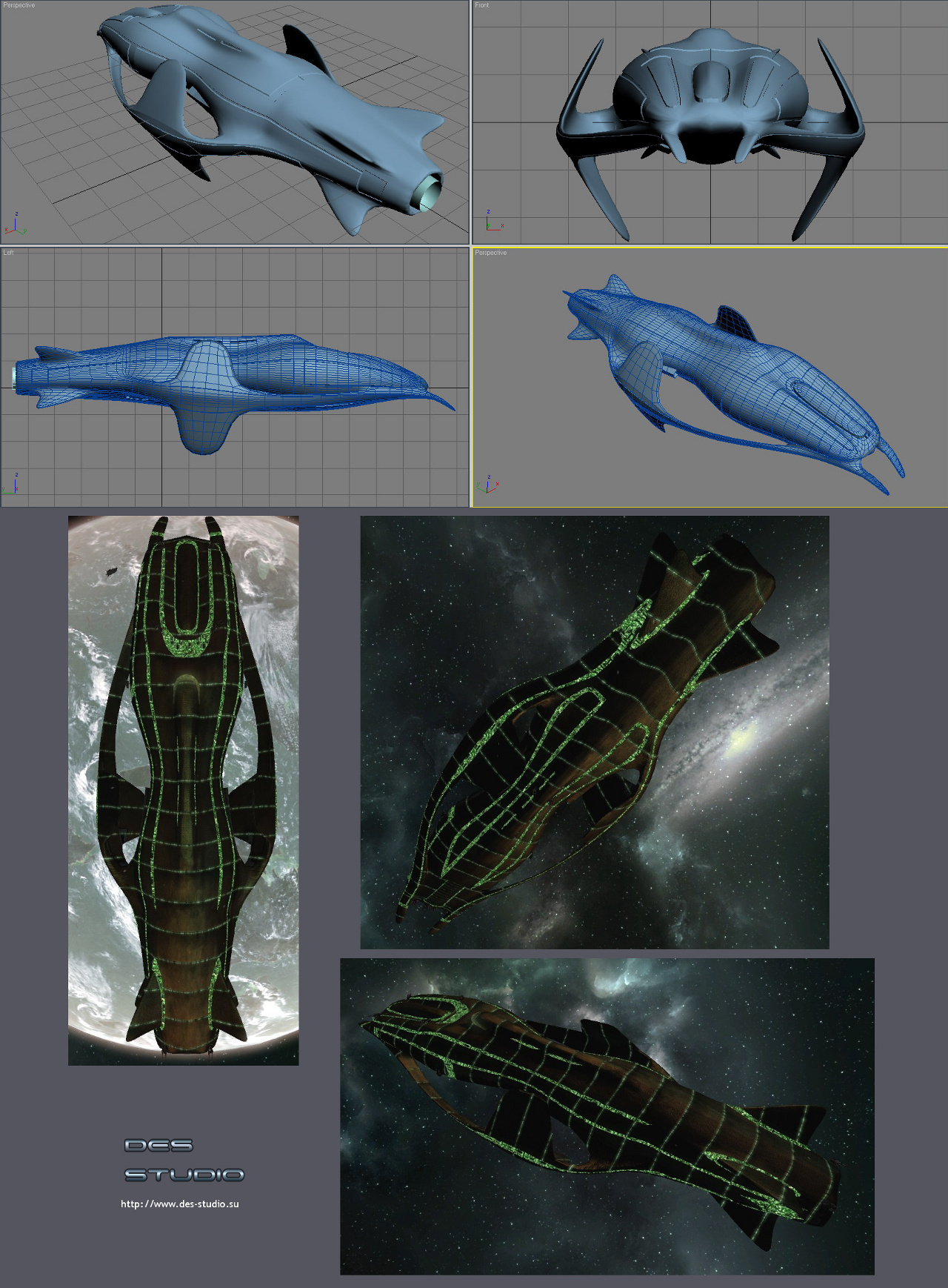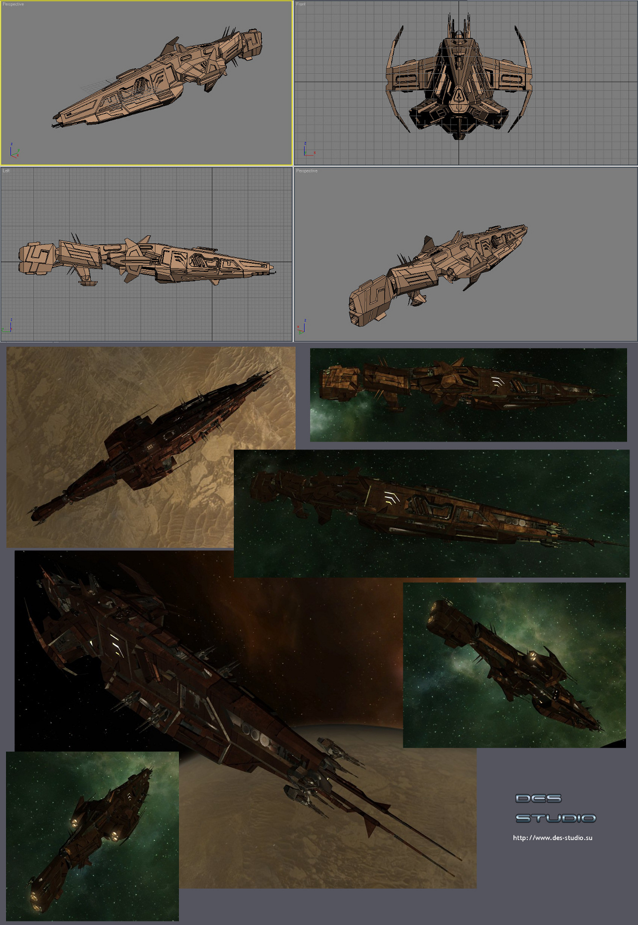 Contest entries: 3D models made for online contests. I designed this spaceship for a contest held by CCP on DeviantArt and the official site of "EVE Online".
